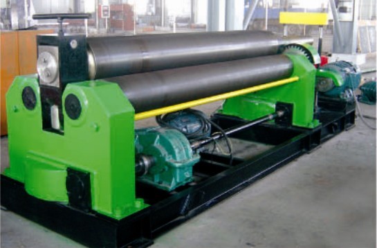 该机结构形式为三辊非对称式,上辊为主传动,下辊垂直升降运动,以便夹紧板材,并通过下辊齿轮与上辊齿轮啮合,同时作为主动传动;边锟作倾升运动,具有预弯和卷圆双重功能.结构紧凑,操作维修方便.