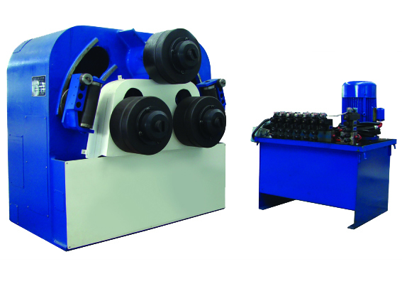 型材弯曲机是一种专用于卷弯角钢、槽钢、工字钢、扁钢、方钢、圆钢等各种异型钢材的高效加工设备,可一次上料完成卷圆、按圆工序,广泛用在石油、化工、水电、造船及机械制造等行业。 型材弯曲机的两下辊为主传动辊,也可三个工作辊为主传动辊,两个边辊围绕回转中心作弧线升降运动,两侧设有托辊装置,有利于保证非对称截面型材卷制质量。本机结构先进,工作可靠,体积小,功能齐全,是目前国内外先进的型材成型设备。机械可配置结构先进的型材成型设备。机器可配置结构先进通用或专用模具,该机操作方便、效率高,倍受用户欢迎。